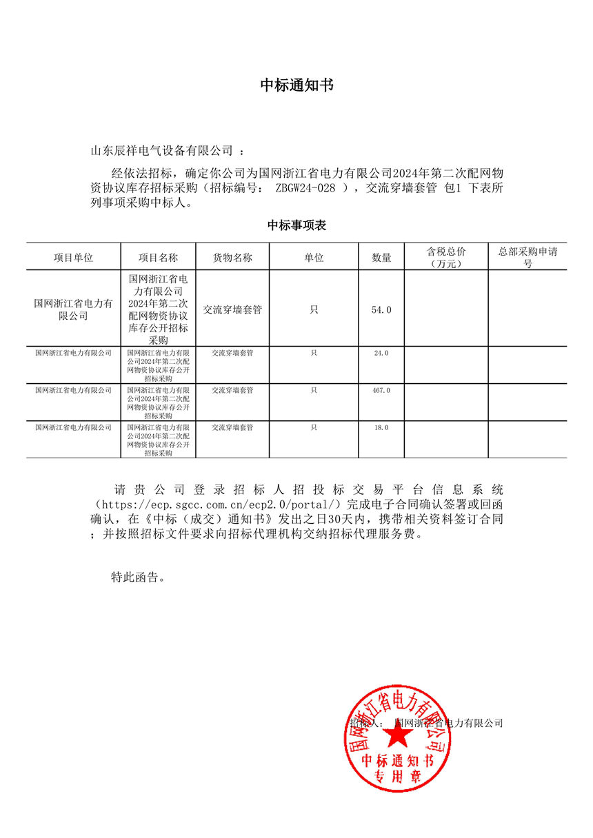 2025.02.14 110kV瓷絕緣穿墻套管中標通知書